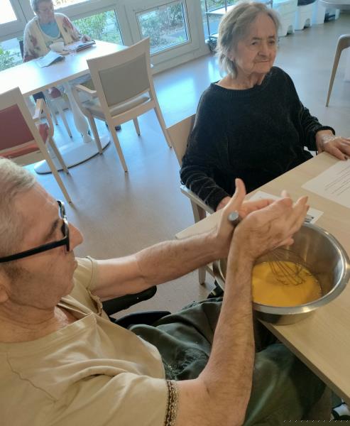 Ce jeudi, des résidents de l'unité Médoc se sont joints à ceux de Bordeaux pour préparer des madeleines maison.