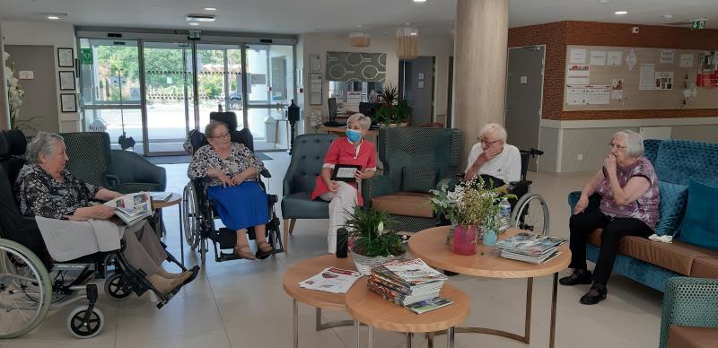 Aujourd'hui, grand moment de concentration ! nous recherchons des noms de chanteurs avec Mélody qui nous donnent quelques indices, lieu de naissance du chanteur, titre des chansons et nous fait écouter quelques passages ! Animation appréciée des résidents !