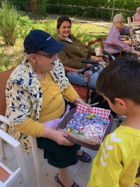 Les enfants des collaborateurs ainsi que les petits (et arrières!) enfants des résidents sont venus chercher les oeufs préalablement préparés par les résidents !