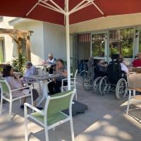 Publiée le 11/06/2021Depuis plusieurs jours les résidents des UVP déjeunent en terrasse, à l'ombre des pins et des chênes. Ils apprécient de pouvoir manger au grand air. Pour certain cela rappelle les souvenirs des repas de familles du dimanche. Le jardin thérapeutique est également sujet à discussion. En début d'après [...] Lire la suite