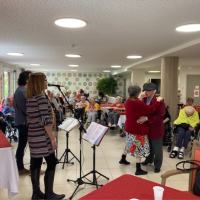 Publiée le 27/04/2021Nous avons fêté les anniversaires des résident(e)s né(e)s au mois de mars et avril. Avec Gil Herit et Kristell pour l'animation musicale. Ces moments festifs sont très importants et appréciés de tous. Lire la suite