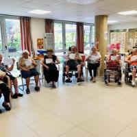 Publiée le 24/09/2020Aujourd'hui, nous avons fêté les anniversaires des résidents nés au mois de septembre. L'ambiance musicale était assurée par Gilles Hérit, qui a fait chanter et danser les résidents et les équipes. Lire la suite