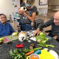 Publiée le 20/07/2020Vendredi, les résidents de l'UVP Médoc ont accueilli Valérie et ses petits animaux (Lapins et cochons d'Inde), et Opale (sa petite chienne). Au programme : des câlins, des caresses, des sourires. Une séance captivante et apaisante pour les résidents. Prochaine séance le 5 août avec les résidents de l [...] Lire la suite