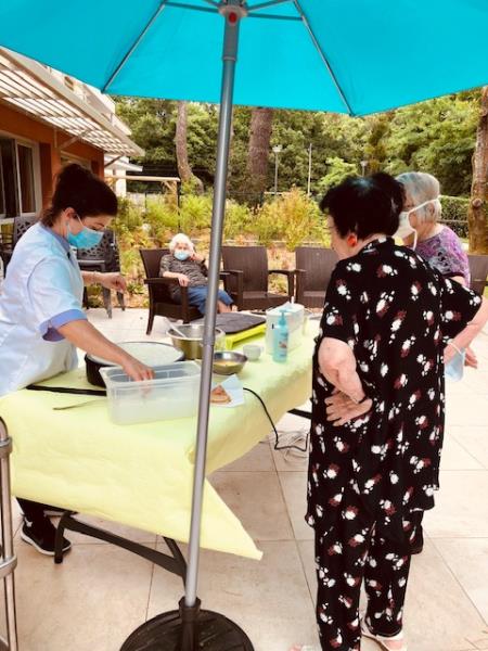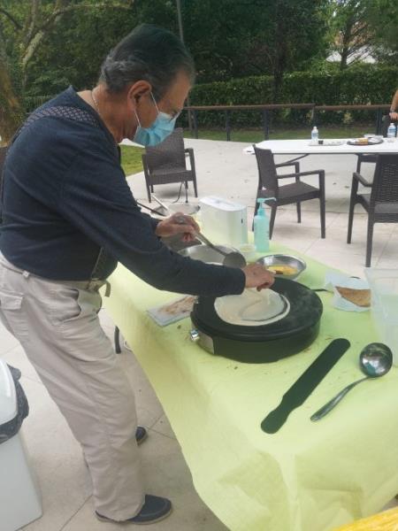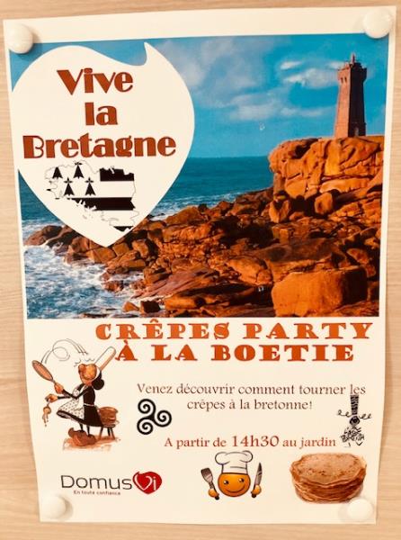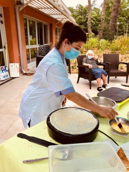 Solenn, stagiaire animatrice et aux origines Bretonnes a proposé aux résidents, une journée sur le thème de la Bretagne. Au programme, préparation de la pâte a crêpe le matin, cuisson et dégustation des crêpes l'après-midi. Le tout accompagné de chansons Bretonnes, du caramel beurre salé et du cidre. Un vrai régal !
