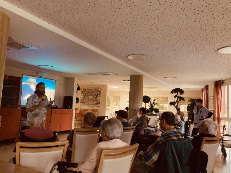 La semaine dernière, nous avons accueilli Philippe Massélis, conférencier et père d'une famille nombreuse, qui a la passion des voyages. Depuis plus de 20 ans, ils parcourent le monde en famille, un véritable choix de vie. De ses voyages, il réalise des montages vidéos et souhaite les partager et les commenter. A la Boétie cela fait plusieurs années qu'il vient et les résidents adhérent toujours autant. Il a ainsi présenter leur "Road trip" dans les différents lieux emblématiques connus et moins connus des États-Unis. Prochain voyage, la Thaïlande.